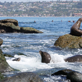 On Friday, my friend Adam (skinnier white guy ^.^) visited me from Arizona with two of his buddies. We met out at La Jolla cove and watched the infamous sea lions frolic around the rocks.